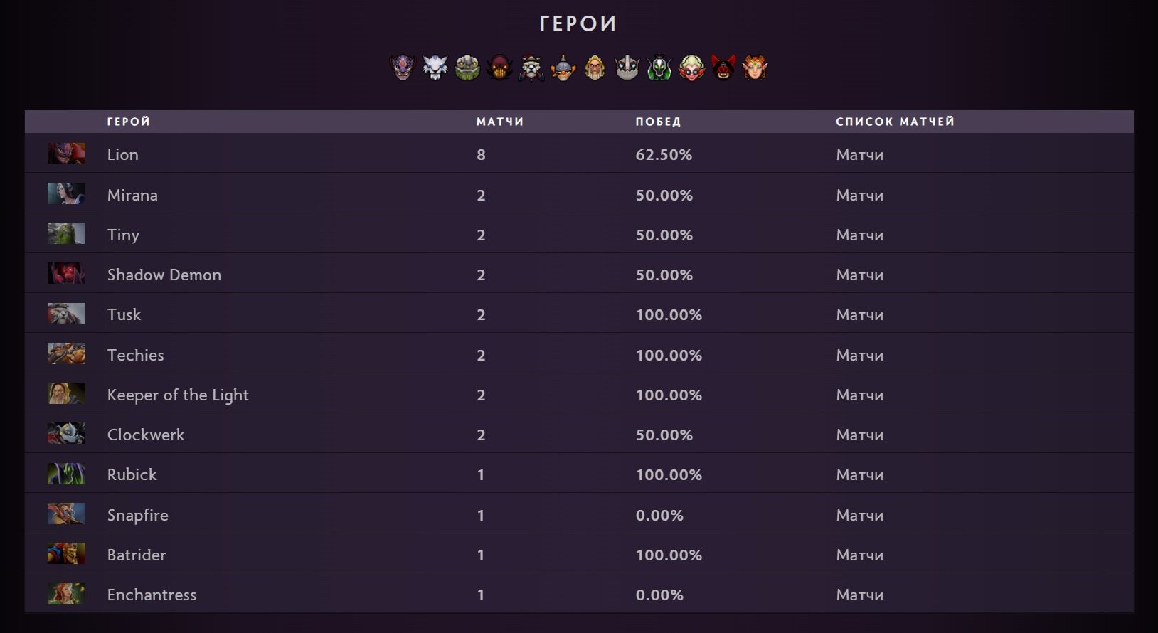 Если переходить от общего к частному, то вот широченный пул героев Миры на нескольких крупнейших успешных турнирах в составе Team Spirit: