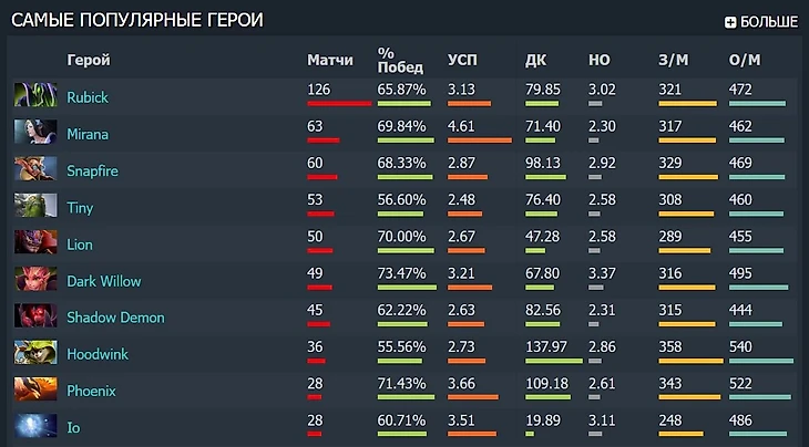 И если посмотреть в целом на карьеру Миры, то окажется, что он действительно всегда играл с большим упором на поддержку и всегда чаще был богатым саппортом, чем еще одним кором. В топе его героев за профессиональную карьеру исключительно «четверкой» можно назвать, пожалуй, только Tiny. И в гораздо меньшей степени Лиона. Остальные – 4-5, а среднее золото в минуту <350 на всех, кроме Hoodwink, ключевой артефакт которой (Gleipnir) дает кучу фарма. Именно богатая белка – самый фармящий персонаж Миры.