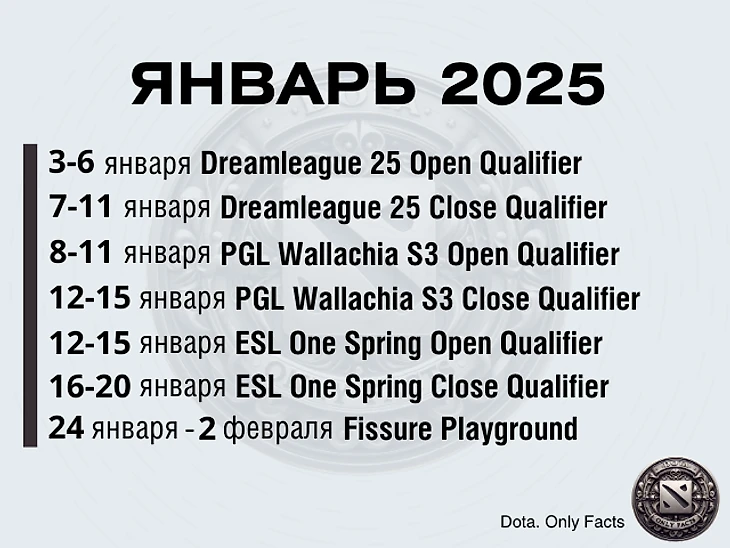 Уже 3 января стартуют открытые квалификации на 25 Дримлигу. Турнир входит в ESL Pro Tour с финальным турниром в Рияде, так что все стремятся туда попасть, желательно, напрямую. Участие в этом этапе уже обеспечили себе ББ, Пари, Фальконс и Ликвид, так что вот у них отдых всё же состоится, а вот остальным играть. Распределение слотов из квалификация ну турнир следующее:
