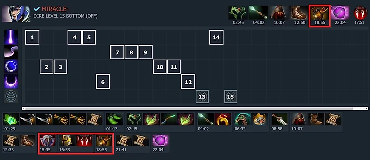 Даже у лучших игроков в истории Доты бывали такие билды. В Nigma Galaxy времен W33 в миде Мираклу иногда буквально срывало крышу. Вместо того чтобы выиграть игру на керри-Луне, Амер сходил с ума и закупался аурами для W33 на Мипо.