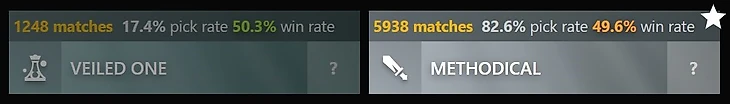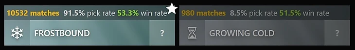 Не смотрите на такой разрыв в количестве пиков – Лич сейчас мегапопулярен, и аспект Frostbound просто более универсальный и безотказный. С ним вы никогда не прогадаете.