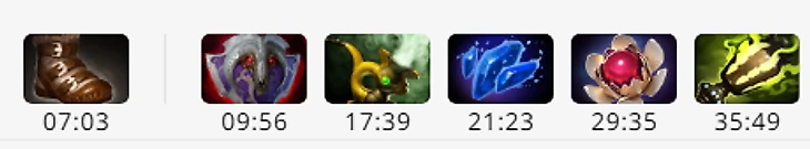 В хорошей игре итембилд выглядит так: ПТ ➔ Стики ➔ Соул Ринг ➔ Аганим ➔ шард ➔ СиЯ ➔ Бладстоун ➔ БКБ или Еул.