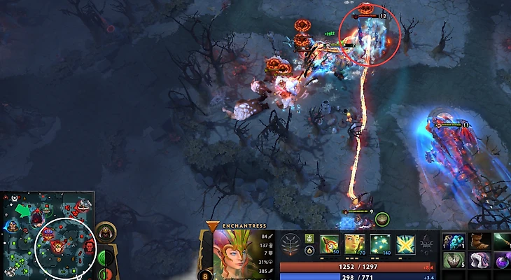 Пример. На 10-й минуте Ватсон в одиночку оказывается в боте против Фантомки и Праймала. Момент напряженный: Алимжан уже потратил Сандер, а у Бзм’а откатываются все кнопки.