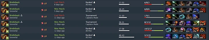 Бристлбэк – хорош на обоих играющихся аспектах. Дает мобильность, помогает затягивать драки, а каст предмета на союзника не требует разворота. Крайне важная вещь на еже!