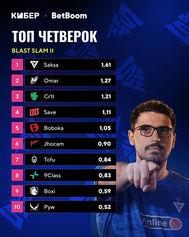 ● Torontotokyo вернулся на «пятерке» с BetBoom Team и плохо сыграл турнир. Но к нему вопросов мало: он уже почти полгода тренируется на оффлейне, а турнир провалила вся команда. Выделяется только Save – рейтинг 1,11 и топ-5 среди четверок Никто из его тиммейтов не поднялся выше седьмого места, у Gpk и Pure и вовсе рейтинг 0,80 и 0,66.