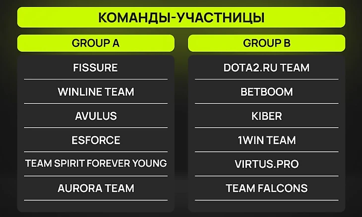 Групп две, из них вылетит по паре команд. Топ-2 каждой пройдут в верхнюю сетку, а третьи и четвертые места окажутся в нижней. Матчи в группах – bo1, в плей-офф играем до двух побед.