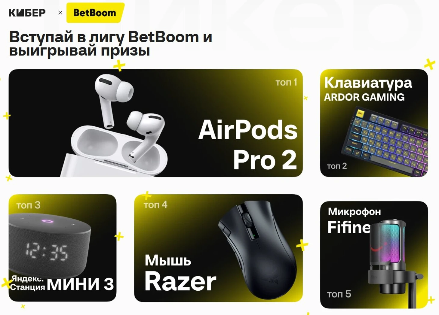 Важно: согласно нашим правилам, можно стать обладателем только одного приза. Если участник выиграл два и более, то ему достается приз от BetBoom, а приз за общий топ получает следующий по списку участник.