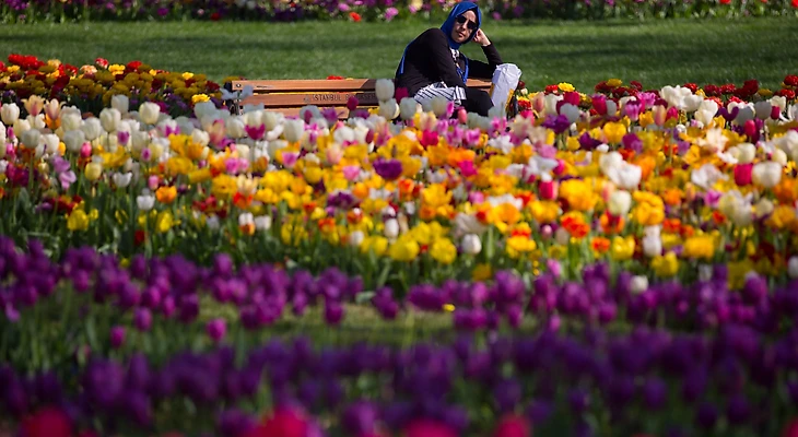 На весь апрель Стамбул укрывается огромным цветочным пледом: цветут тюльпаны абсолютно всех цветов и размеров.