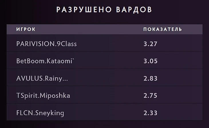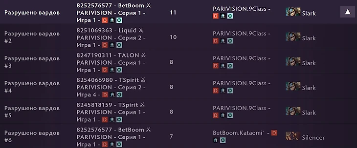 На ESL One Raleigh 9Class поставил сразу 5 рекордов по количеству уничтоженных вардов противника за игру. 5! Ни один другой герой в Доте не может сделать чего-то подобного и глобально геймплей Сларка-саппорта можно охарактеризовать как «охотник на варды».