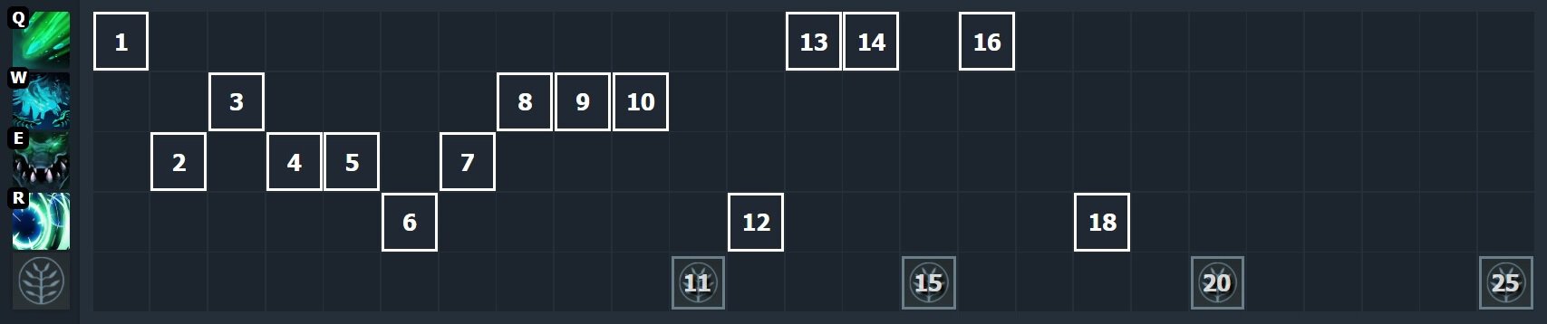 Раскачка – через Atrophy Aura. Пассивка отлично скейлится с каждым уровнем – стаки от нее длятся намного дольше: если на первом уровне их длительность всего 30 секунд, то на четвертом – уже 60. Иногда можно вкачать Firestorm в 2 вместо ранней Pit of Malice, чтобы быстрее распушивать пачки на старте и оказывать давление на врага на линии. Но в таком случае нужен какой-то переходный предмет на регенерацию маны до Echo Sabre: Null Talisman, Soul Ring или хотя бы Infused Raindrops.