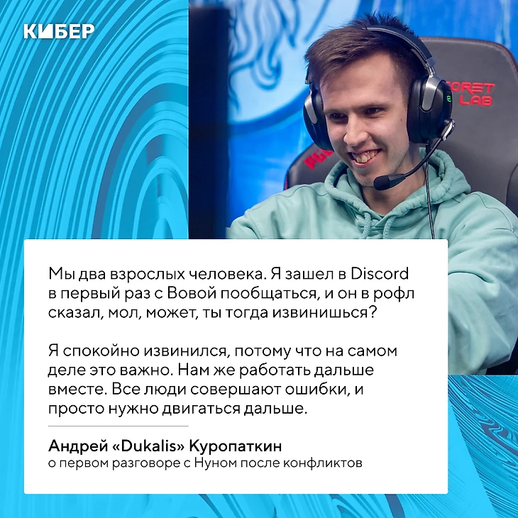 – Мы два взрослых человека. Я зашел в Discord первый раз с Вовой пообщаться, и он в рофл сказал, мол, может, ты тогда извинишься? Я спокойно извинился, потому что на самом деле это важно. Нам же работать дальше вместе. Все люди совершают ошибки, и просто нужно двигаться дальше. Извиниться – вполне нормально.