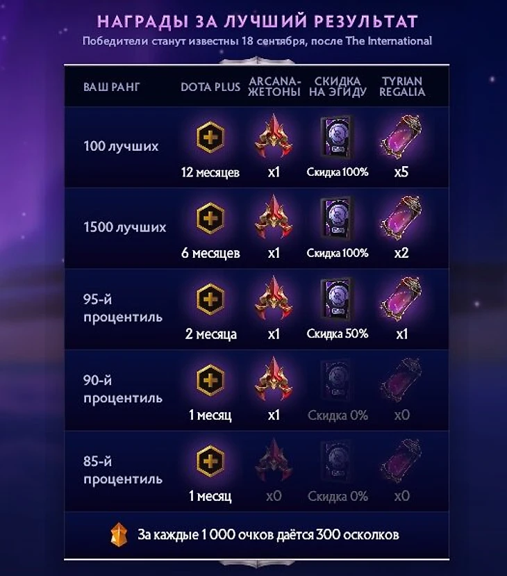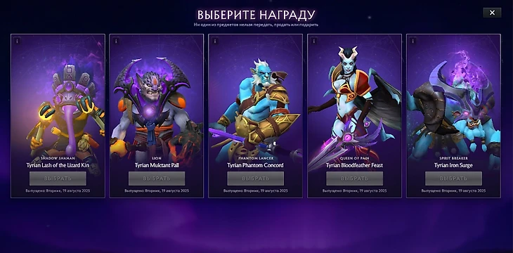 «Но, – возразите вы, – эти таблицы временные, а моя правота должна остаться в веках». Понимаем. Именно поэтому мы представляем вам Tyrian Regalia – коллекцию Immortal-предметов, окрашенных в пурпурный цвет под стать турниру этого года. Эти эксклюзивные награды для лучших фэнтези-менеджеров и прогнозистов нельзя передать: они привязаны к аккаунту игрока. Хотите их получить? Путь только один – победа».