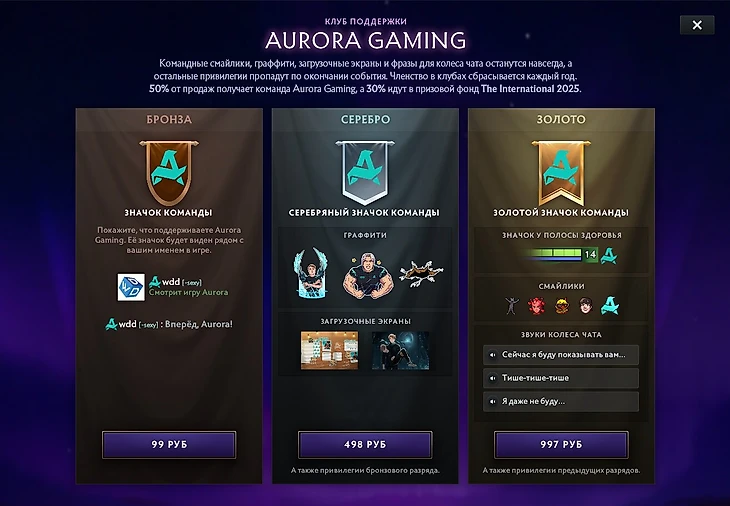 Бронзовый бандл со значком команды стоит 99 рублей;