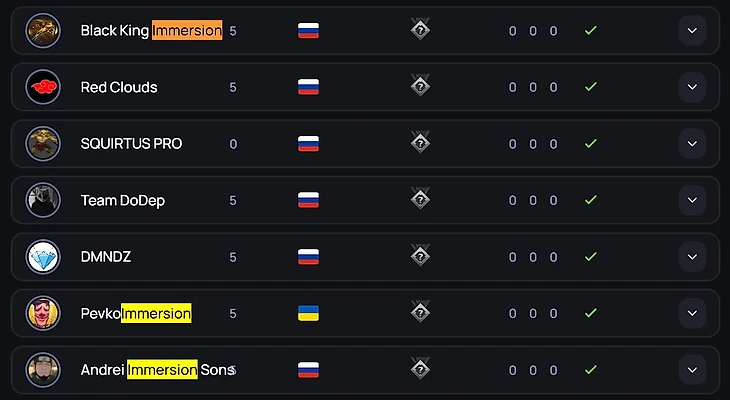 После проверки готовности осталось 110 команд, но при всего ~400 подтвержденных участниках это, несомненно, очень много. Лучший из «иммерсивных» составов добрался до топ-32 открытой квалификации.