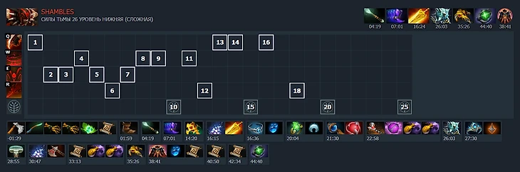 Что с Сайленсером, что без, я раскачиваюсь одинаково. Bloodrage на первом, Blood Rite на четвертом и макшу пассивку. Из-за того, что «лапки» требуют маны, вторым скиллом особо не поспамишь.