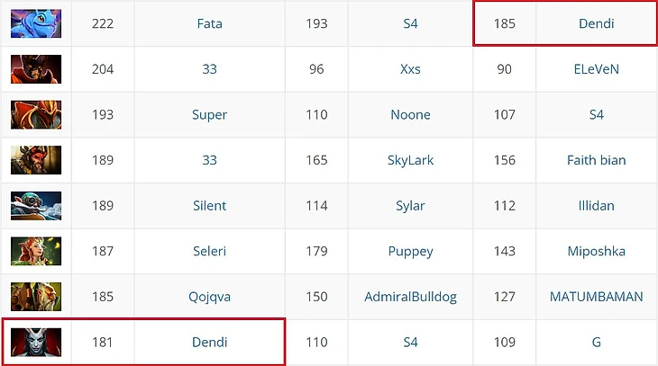 Если мета в миде 15-летней давности, то и суперзвезда нам нужна из того времени. Только вдумайтесь: Денди до сих пор выступает рекордсменом по числу сыгранных матчей на Акаше в Dota 2, c отрывом от ближайшего преследователя в 70 карт! И также находится в топ-3 по числу игр на Паке. И кто знает, сколько еще он сыграл ими в Dota Allstars. Данил – признанный мастер персонажей, которые сейчас в мете.