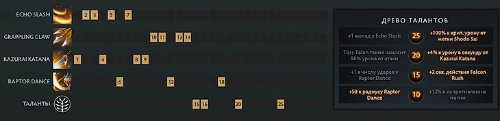 Echo Slash – важнейшая способность для харраса врагов и фарма леса позднее. Именно ее всегда качаем в приоритете. По ситуации можно взять Grappling Claw, но без лайфстила способность теперь не очень хороша на ранней стадии игры.