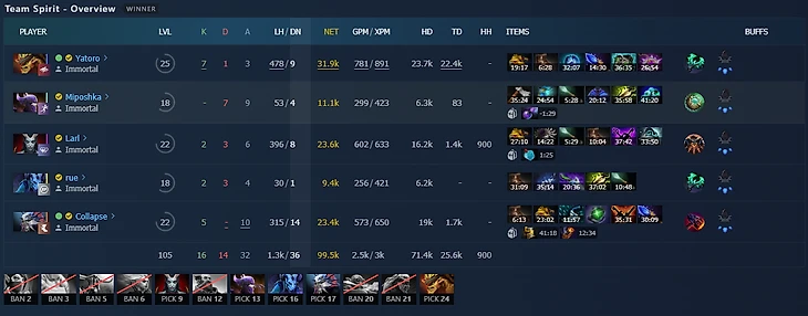 Да, 19 из 25 игр Акаша провела на центральной линии. Но еще три игры проводила на керри и оффлейнере и выиграла 4 из 6 матчей.