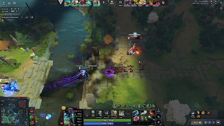 Помогали здесь и подключения союзников. Будь здесь только Урса и Веномансер, Тини бы спокойно пошел навстречу Баньше, и их совместный прокаст за секунду оставил бы Урсе меньше половины здоровья. Однако появление tOfu на Бэтрайдере нивелировало преимущество. Кроба убежала под вышку, Урса, получил килл и свободную для фарма линию, а стянувшийся для возможного убийства мидер Тундры ушел ни с чем.