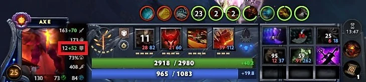 +15 брони от агра, дополнительная выживаемость от врожденной способности и аспекта делают Акса крепким танком. Когда он покупает Blade Mail и Аганим, то убить его на врыве становится почти нереально.