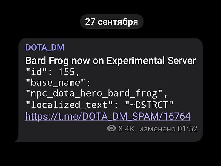 Имя героя – «bard_frog» – с соответствующим специфическим фоновым экраном нашли еще год назад в файле, отвечающем за задники героев в арсенале.