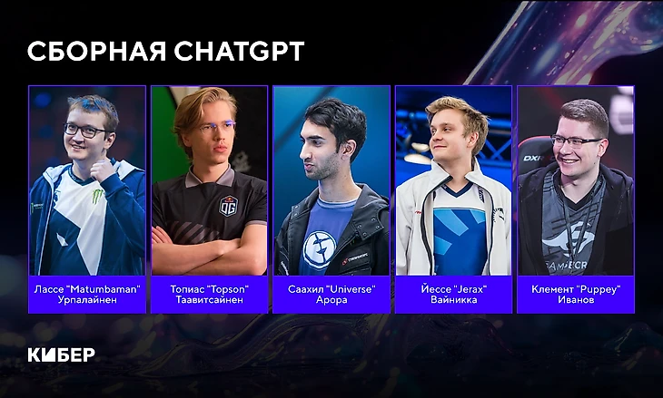 Этот состав – не просто звездный, это мифологическая пятерка, которая сформировала облик современной Доты», – объясняет выбор ChatGPT. Нечего и добавить.