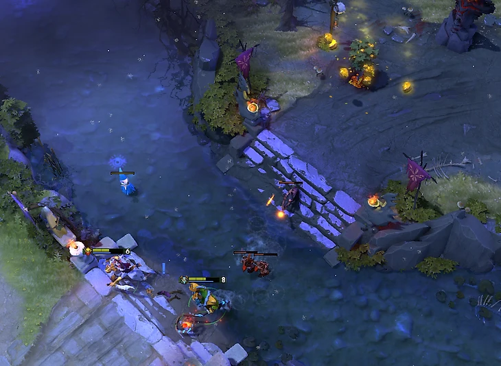 Зато Nature’s Profit – это однозначный выбор для мидового Фуриона. Деревьев вокруг речки нет, усилять лейнинг нечем. А с быстрым 6-м уровнем мы помогаем команде на сайдах ультимейтом и подключением через ТП, попутно получая дополнительные деньги на команду за фраги.