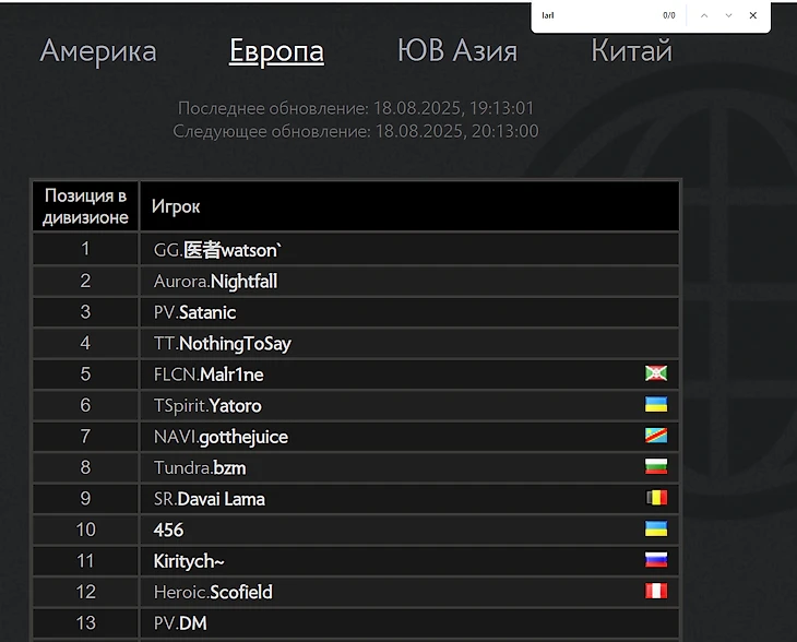 Обновлено: 30 августа Ларл снова появился в таблице лидеров по MMR – на 131-м месте. Это значит, что он сыграл уже достаточно, чтобы откалиброваться. Но новостей по возвращению нет.