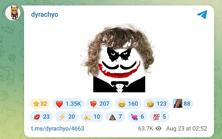 Дурачье в телеграм-канале запостил стикер «Увы» со своей прической