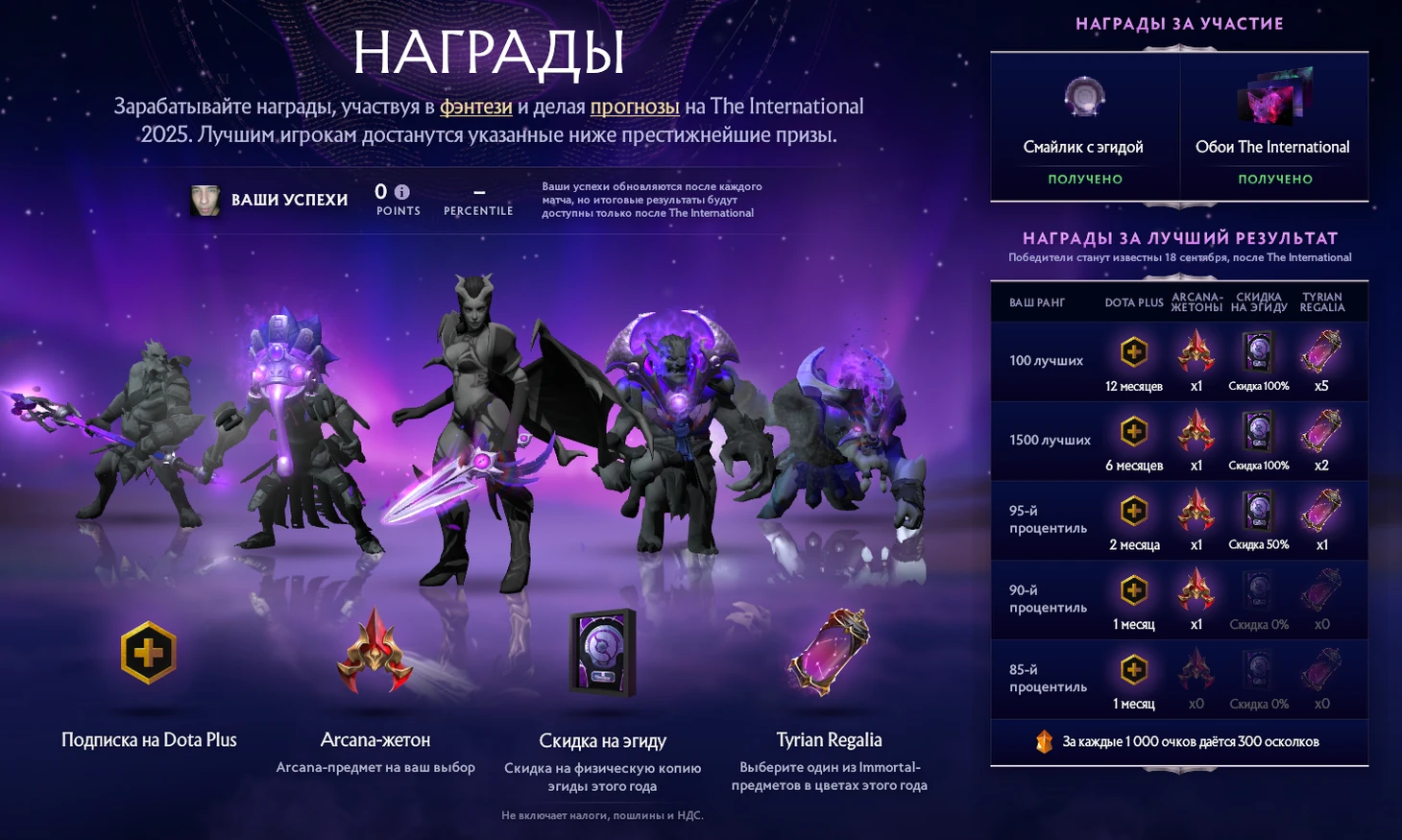 Остальные нужно выиграть, участвуя в Фэнтези и делая прогнозы на результаты стадий The International 2025. На основе этих активностей пользователи получат Компендиум-очки – они и будут влиять на итоговое место и награды.