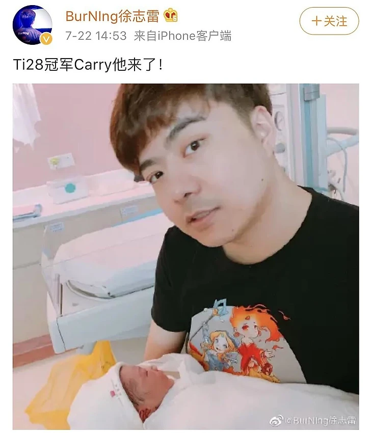 17. 22 июля 2019-го Бернинг стал отцом. Об этом он тоже написал в Weibo. К фотографии с сыном он добавил подпись: «Лучший керри TI28».