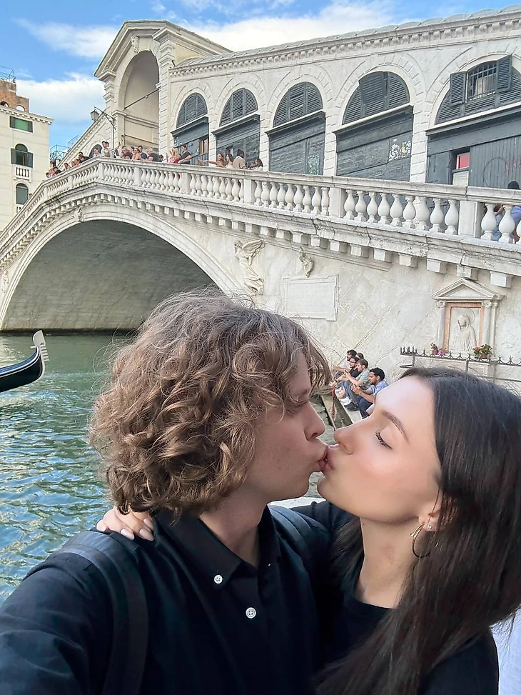 Через несколько дней пара отправилась в Венецию. Конечно же, нельзя было не сделать фото на фоне Средиземного моря – особенно при такой погоде.