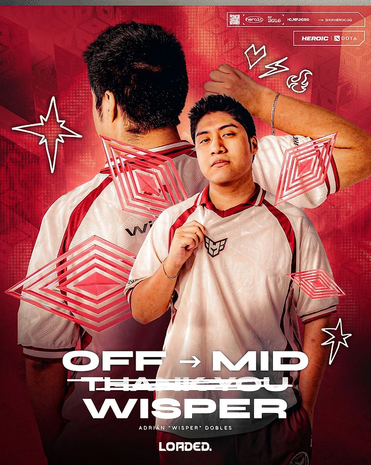 Heroic сообщила, что Адриан Сеспедес «Wisper» Доблес стал новым мидером команды. Киберспортсмен ранее выступал за Heroic на позиции оффлейнера, но решил сменить роль.