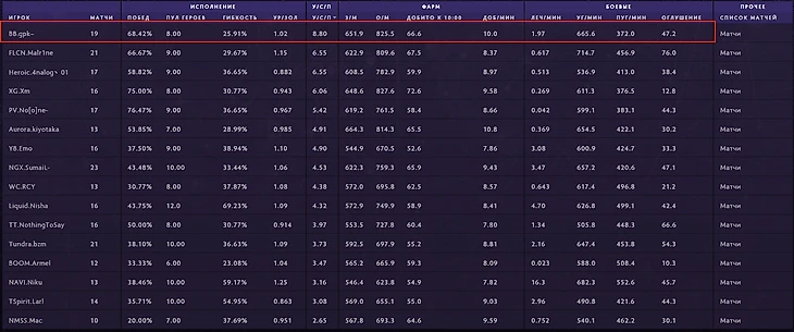 ◉ В КАЖДОЙ игре долбил лес в АФК-режиме. Зато побил рекорд Бернинга по количеству крипов! Но KDA 2/3/3 за час игры – ужас.