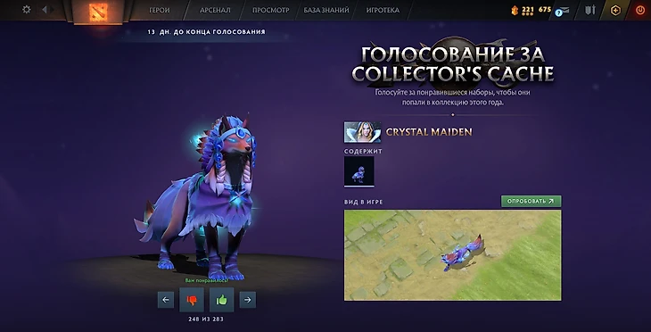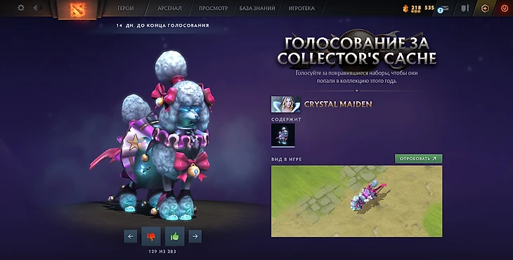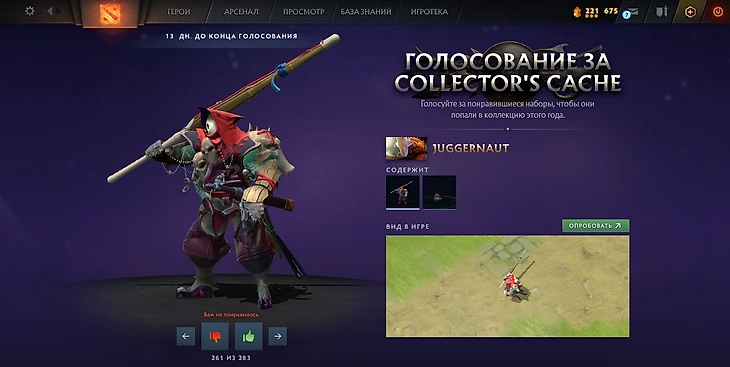 В октябре Valve запустила в Доте голосование за новые наборы, которые позже войдут в сокровищницу Collector’s Cache. В нем участвуют 283 пользовательских косметических предмета для 104 персонажей. Большинство сетов созданы для Pudge и Phantom Assassin – у них по 12 (!) предметов.
