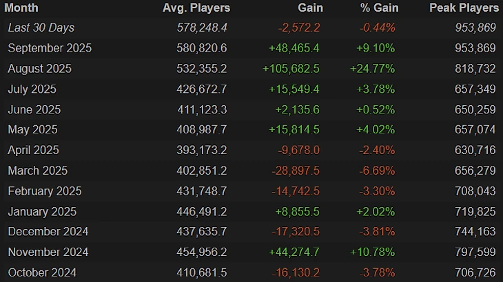 До конца текущего года осталось еще два с половиной месяца, но практически все интересные события завершились, так что можно сделать более-менее объективные выводы. За последние 12 месяцев средний онлайн выглядит вот так: