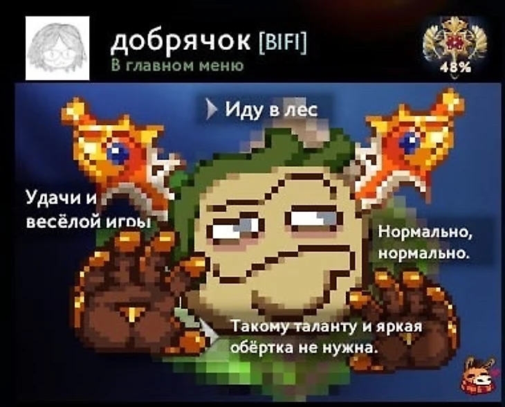 В этой подборке спокойно можно встретить смешные мини-профили с культовыми мемными моменты из Доты, так и из обычной жизни. Только в кастомном мини-профиле Доты можно встретить как Пуджверс, так и Рамзеса, вновь словившего стрелу на Террорблейде, или угодившего на клифф Артизи. Можно сделать и чуть более эпичный профиль, добавив с помощью некоторых ухищрений черные полосы в мини-профиль, сделав акцент на том, что находится в центре профиля, так и просто добавить флаг, например, России.