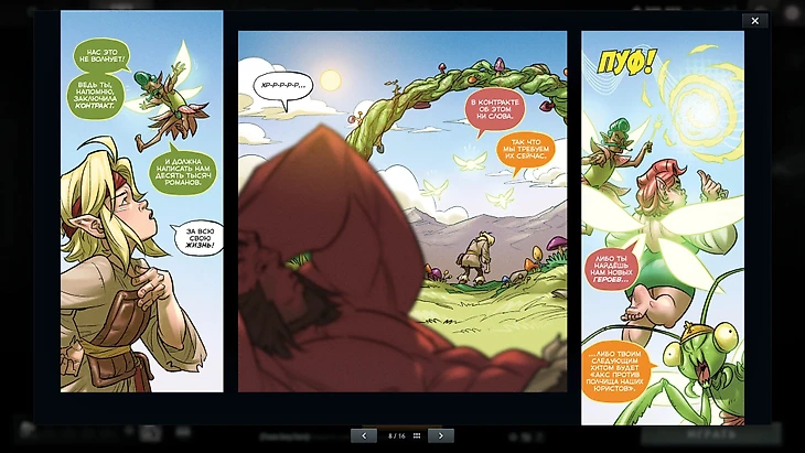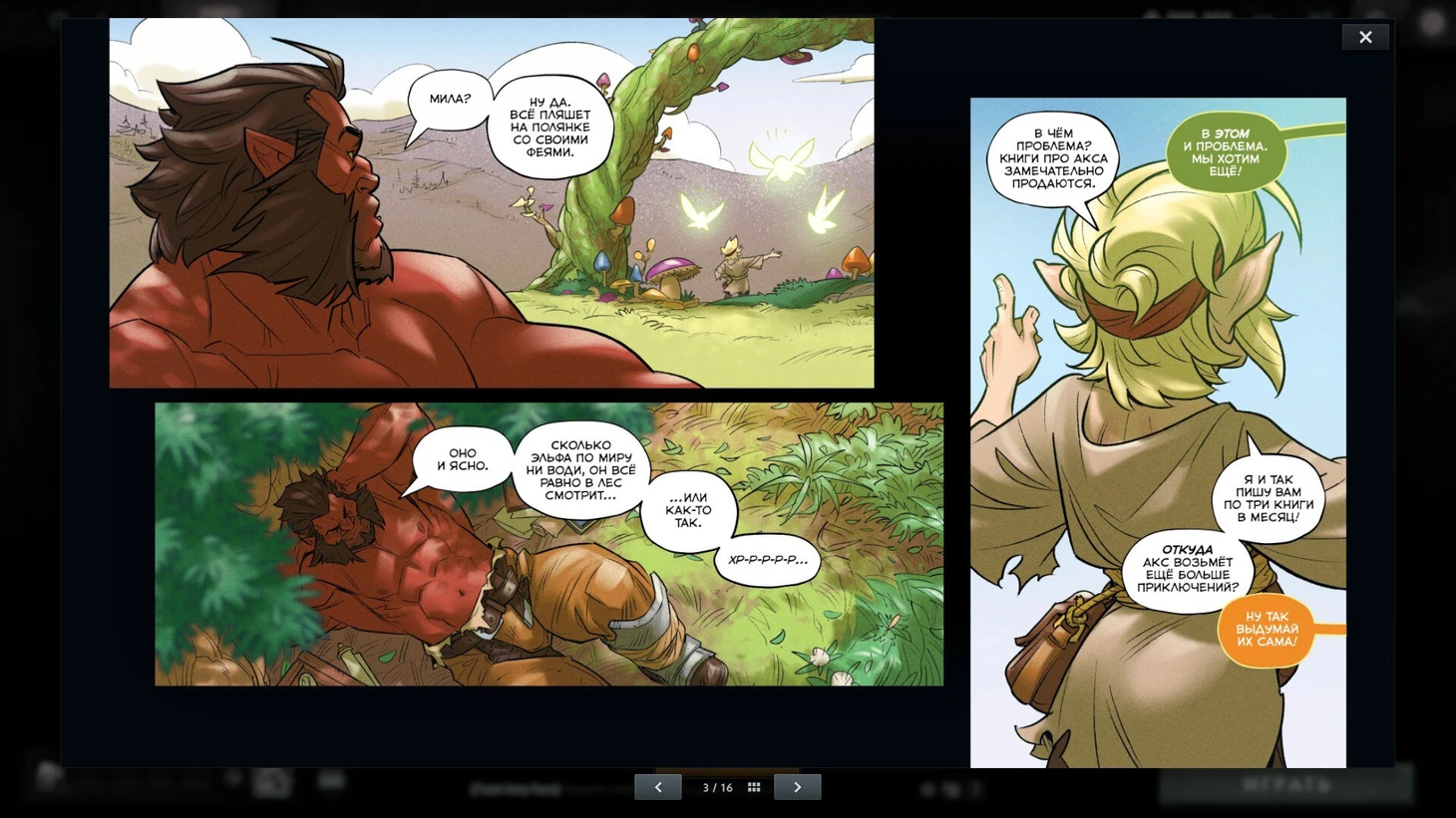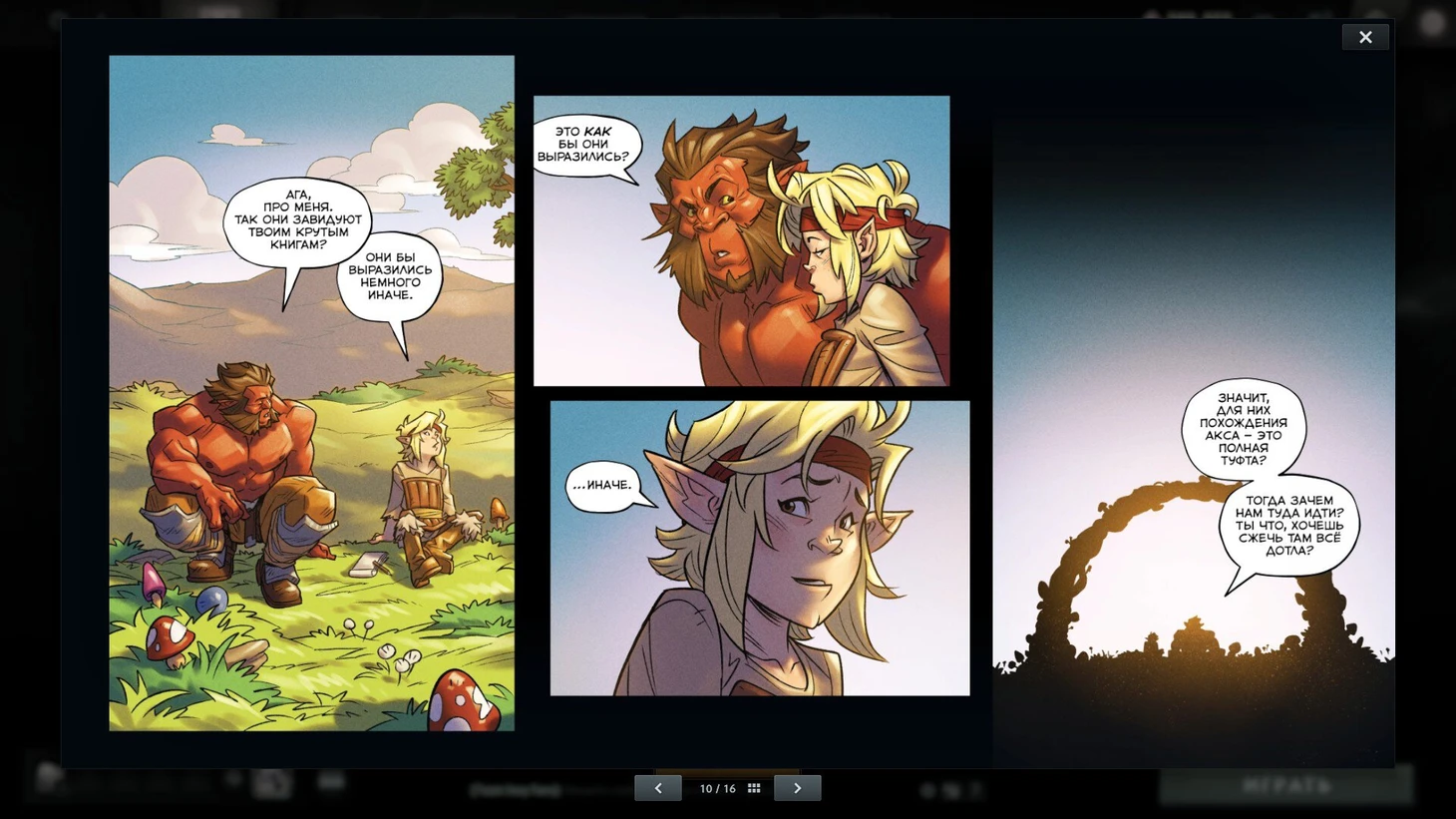 С началом кроссовера Доты и Monster Hunter в игре стал доступен новый комикс, посвященный вселенной Доты. Он рассказывает о совершенно новом персонаже – писательнице Миле Г., которая зарабатывает публикацией книг об Аксе и его приключениях.