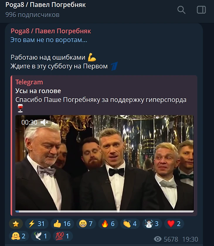 Никс даже выложил видео с оговоркой Павла к себе в телеграм-канал и поблагодарил его за «поддержку гиперспорда». Примечательно, что футболист репостнул это сообщение уже в свой телеграм-канал и сделал отсылку на песню про себя, где в припеве «Погребняк Паша по воротам ###### [бьет]».