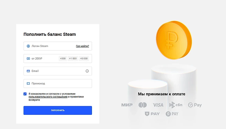 Чтобы не рисковать, используйте проверенные методы. Пополнить кошелек Steam можно прямо через наш сервис.