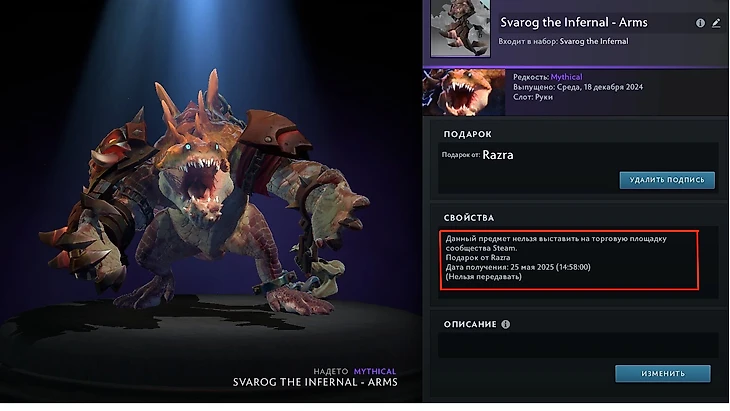 Ответ жесткий: нельзя. Предмет, полученный через функцию Gift Wrap, навсегда получает статус Non-tradable (нельзя обменять) и Not Marketable (нельзя продать). Он привязывается к вашему аккаунту навечно (Gifted Once). Даже Аркану, полученную таким способом, нельзя передарить.
