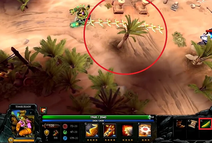 Перед выходом первого оригинального героя второй Доты – Monkey King – во всех закрытых лобби появилась скрытая пасхалка. Если включить читы и срубать любые деревья на карте, то из некоторых с 5%-ной вероятностью падали бананы – уникальные предметы, которые явно намекали на выход и происхождение будущего героя.