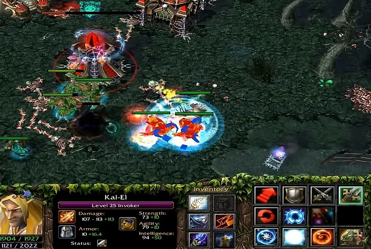 После убийства всех лягушек в правом нижнем углу карты начиналось сражение с Инвокером. За победу игрок получал артефакт, делавший персонажа практически неуязвимым. А в 6.50 в игре появился уже видоизмененный Invoker – из 27 изначальных заклинаний в его арсенале осталось лишь 10 всеми любимых и всем известных: E.M.P., Tornado, Alacrity, Ghost Walk, Deafening Blast, Сhaos Meteor, Cold Snap, Ice Wall, Forge Spirit и Sun Strike.
