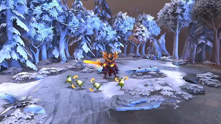 Так в версии 6.49 игроку нужно было найти и уничтожить разбросанных по всей карте невидимых ледяных лягушек. После смерти с лягушек выпадали Quas, Wex, Exort – это были сферы персонажа Kael, The Invoker. Инвокер существовал в ранних версиях игры, но через 2 месяца после добавления, в патче 6.18, был удален за несбалансированность – у героя тогда было целых 27 (!) сломанных способностей, вызов которых зависел от порядка использования сфер.