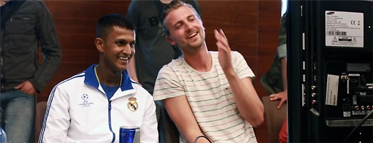 А это немцы. Они мне пока нравятся больше всех. Нет, еще французский болельщик нравится - он спаивает участников и просто всех веселит.