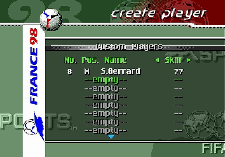 Команду я создавать не стал, сделал лишь игрока. Кстати, в том же детстве, я тратил на это часы, создавая тех игроков, которых в этой ФИФЕ ещё не было. Вот пример.