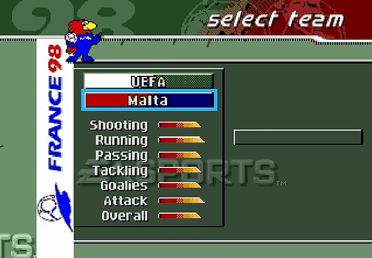 Следующим этапом, соответственно, был выбор сборной, я никогда не играл за сборную России, не знаю почему, не подумайте, что я не люблю свою страну. Всегда любил англичан и играл за них, но в этой игре был небольшой косяк с формами, и англичане, всегда распредилявшиеся в одну группу с Италией, имели синюю форму, такая же была и у итальянцев, играть было невозможно, две команды в синих формах - это перебор. Учась на своих ошибках я выбирал сборную Голландии. Кстати, хотелось бы обратить внимание на статы некоторых сборных.