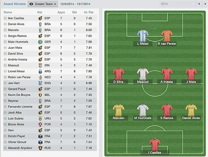Футбольный менеджер показал, что у сбалансированной опытной команды больше шансов добиться наивысшего результата, чем у молодых бельгийцев, опытных голландцев или сборной имени Криштиану Роналду. Фавориты реального ЧМ-2014 и взяли свое в большинстве случаев.