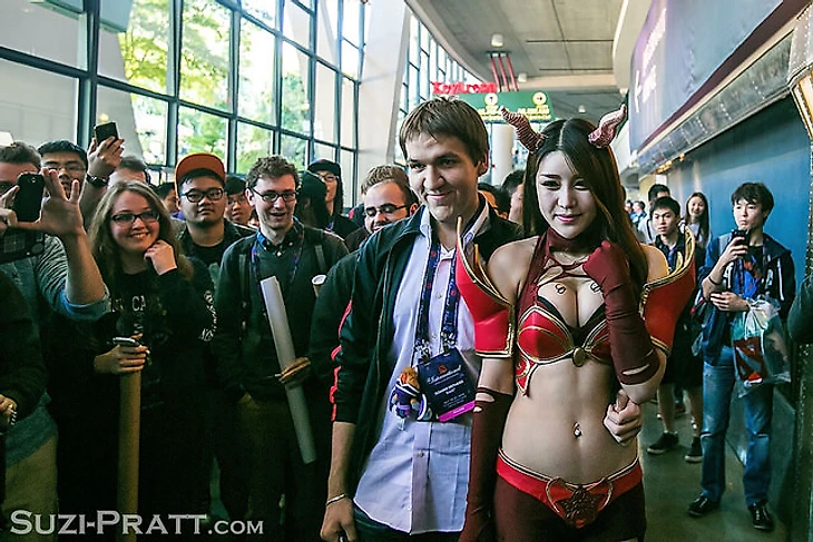 80% процентов игрового сообщества Dota 2 составляют парни. Именно поэтому Valve второй год приглашает на The International симпатичную ведущую Кэйси Атчинсон, которая не только привлекает своей красотой, но и прекрасными интервью и общением со зрителями.