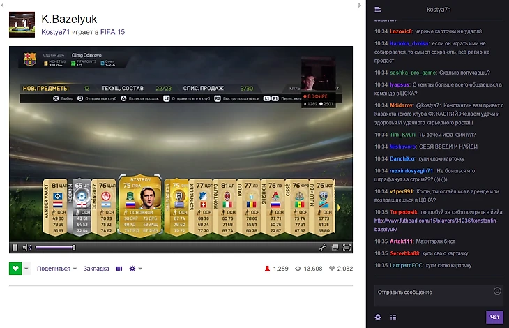 Футболист ЦСКА завел собственный канал на видеостриминговом сервисе Twitch: http://www.twitch.tv/kostya71